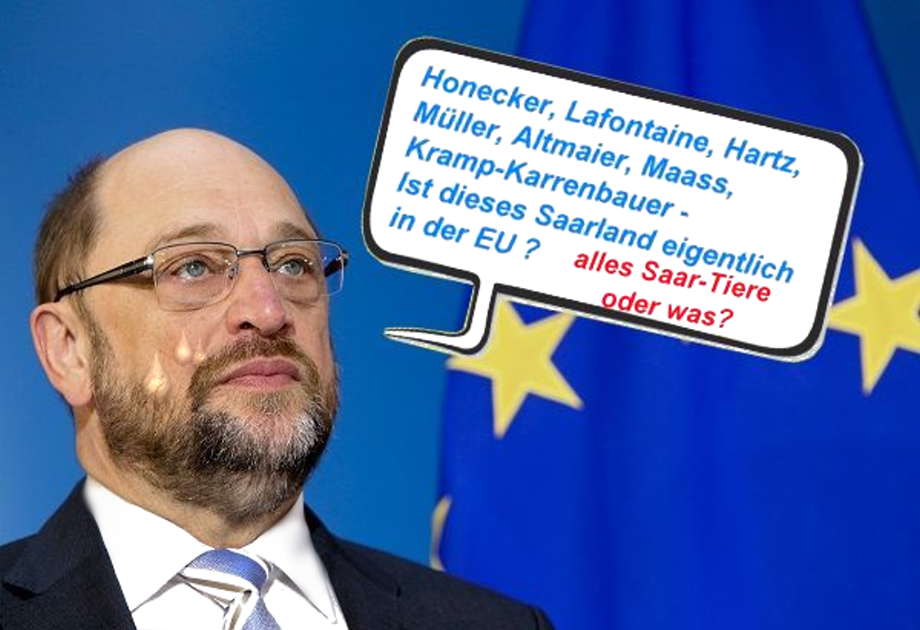 °° diesen Spruch soll Schulz wirklich vor Zeugen rausgehauen haben, natürliesch in Bierlaunööö - ne est ce pas? ...bei einer Nachfeier bei der Verleihung des "Ordens wider den tierischen Durst"- oder so!!! Heiße Luft ist seine Stärke - denn er hat gelernt: heiße Luft hilft beim Aufstieg (manchmal) - wenn man nicht an den Baumwipfeln der Saarschleife hängen bleibt... quel dommage! |